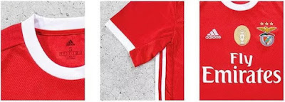 Le 3 strisce del marchio, anch'esse bianche, corrono lungo i lati della Nuova Maglia Benfica.